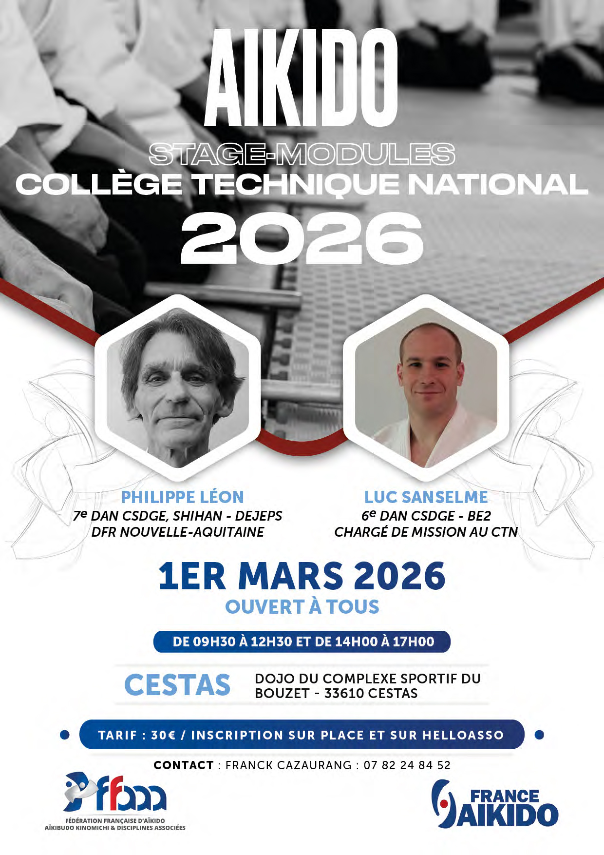 Inscription sur place ou sur helloasso / Philippe LÉON - 7e DAN CSDGE, SHIHAN - DEJEPS - DFR Nouvelle-Aquitaine / Luc SANSELME